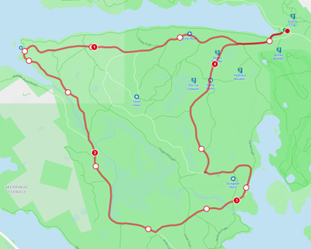 6. Left on GW Rd. Return to start/finish area
